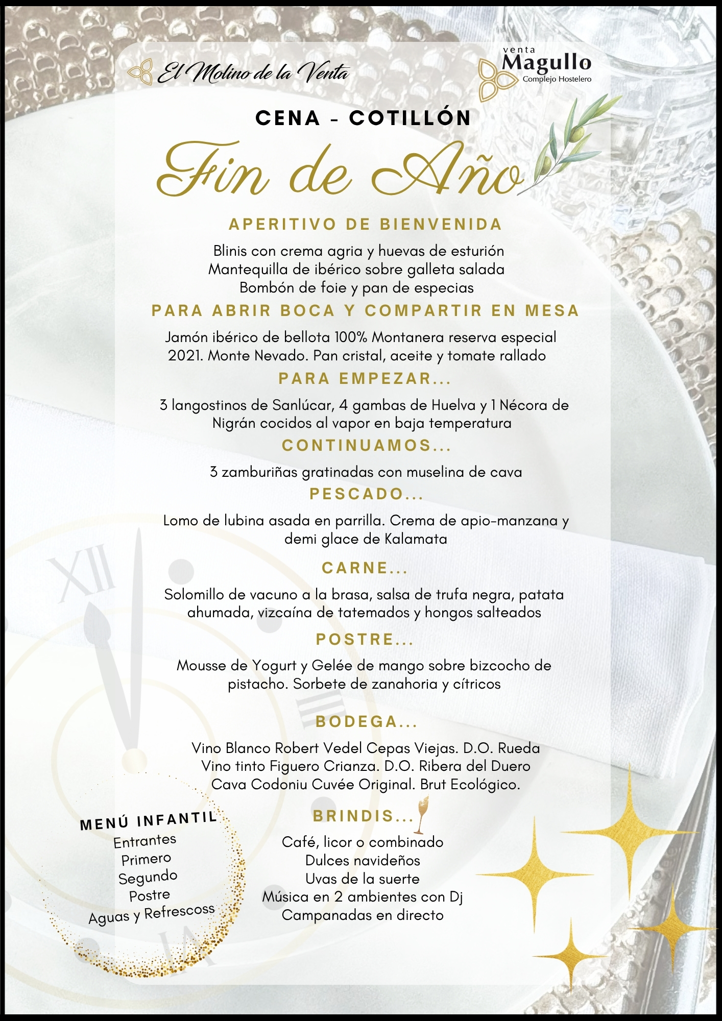 En Venta Magullo abrimos nuestros salones para compartir con vosotros la noche de NocheVieja y disfrutar en familia y/o con amigos.